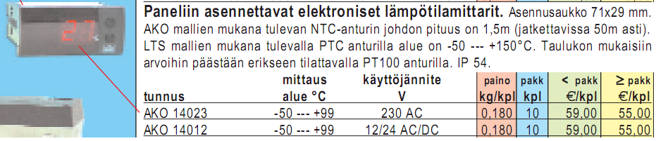 Tässä olisi yksi vaihtoehto Finnparttialta. Parempi vaihtoehto noista olisi tuo 230VAC käyttöjännitemalli jolloin ei tarvitse erillistä muuntajaa.